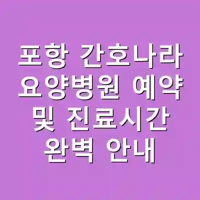포항 간호나라 요양병원 예약 및 진료시간 완벽 안내
